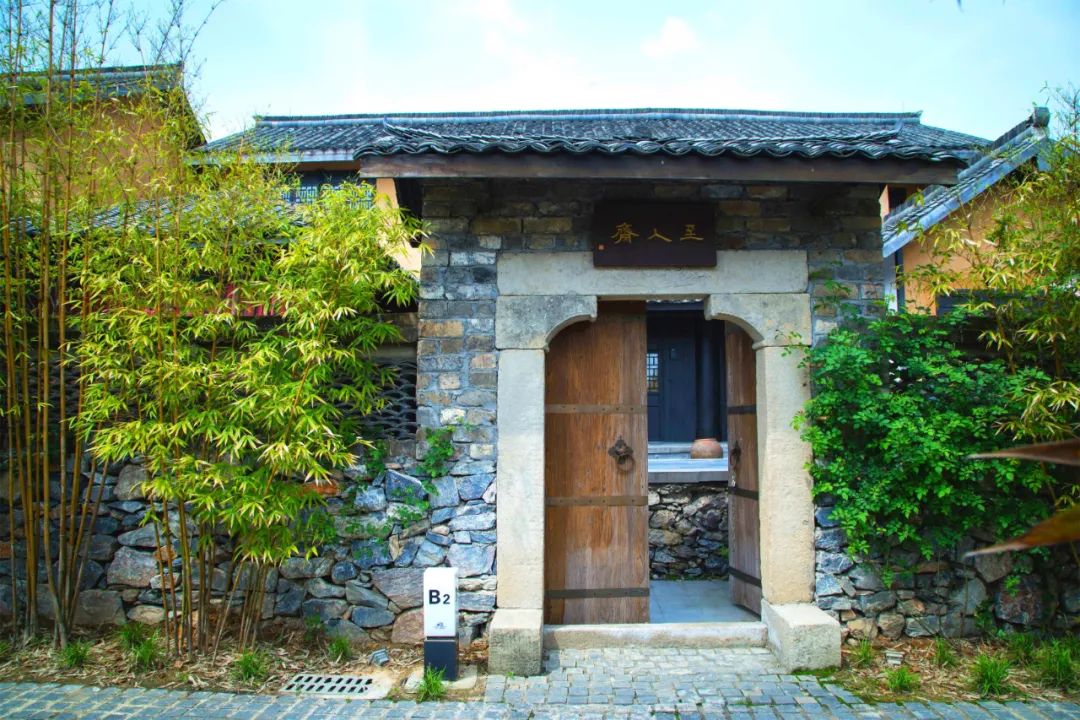 依山而设,隐于云水之间,其间茂林修竹,空气清冽,河畔小舟歇泊、野草丰茂,还有铺满石子的庭院,三两张木桌,诸美皆集。