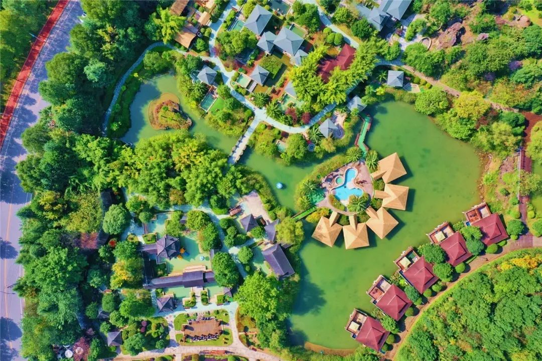 山湖温泉度假区内环境优美,融湖光山色,青山绿水,人文建筑为一体,具有“温泉养生、旅游观光、商务、休闲、度假”等特色。整个温泉池区融汇了世界温泉沐浴文化风情,并倾注了独特深厚的楚文化内涵,突出了浓郁的鄂南特色。