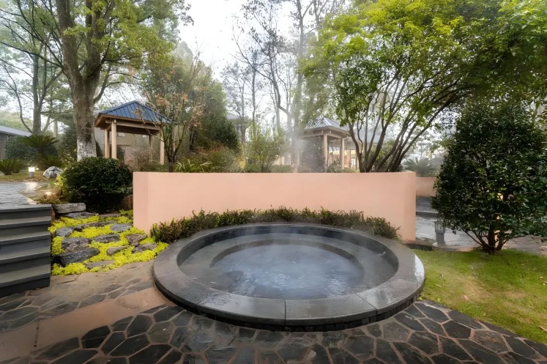 浪口温泉坐拥丰富的地下泉水资源,将温泉养生与森林休闲紧密结合,打造出“氧吧+温泉”度假胜地。建筑均以乡村民俗为设计风格,12间温泉汤屋,4栋温泉汤院满足所有客人的需求。每栋汤院有设有3个独立的泡池与会客厅,私密性十足。