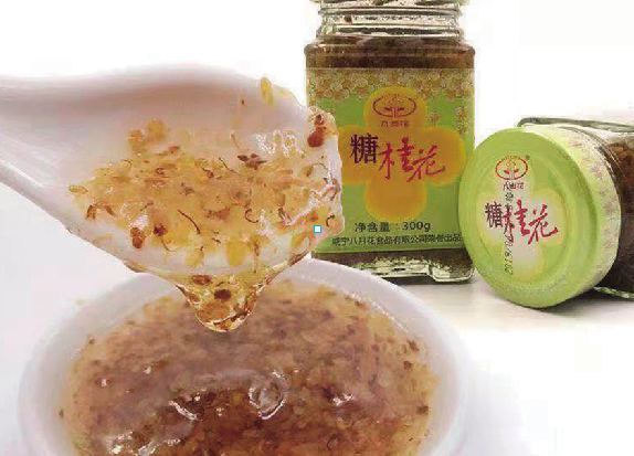 八月糖桂花是由湖北八月花食品股份有限公司生产。公司依托咸宁丰富的桂花资源优势,专业从事桂花产业种植及相关产品研发、加工、销售。产品有绿色食品馅料、特色调味料和新型桂花露酒三大类。(傅辉)